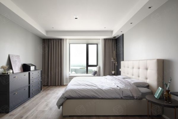 主卧没有夸张多余的装饰,米黄色的床具,黑色的储物柜,在卧室空间怡然自得地安放着。飘窗设计让主人可以在此读书喝茶,让生活多了一份从容。