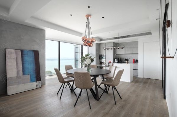 厨房空间提供的不仅仅是美味,更是一个家的幸福。开放式的西厨设计,可变角度的筒灯式吊灯配合用餐席位而改变。餐厨一体的设计使空间叠加释放延展,形成开放空间。