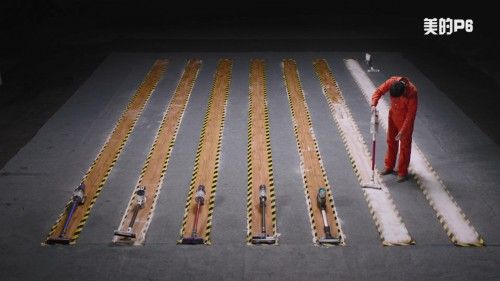 在本次测试中,我们分别铺设了7条长10米、宽20厘米的赛道,赛道宽度基本上跟吸尘器的刷头差不多。每条赛道上撒了3.5斤苏打粉,这相当于普通家庭1个月的灰尘量,通过测试机器将灰尘清理干净需要多少时间,来呈现不同吸尘器的吸力对比。