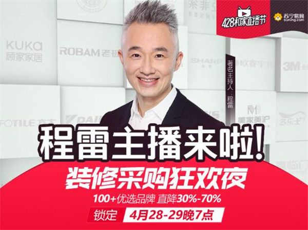这厢,新生代网红主播李佳琦、薇娅热度不减,品牌直播一个接一个;那厢,第一代网红罗永浩誓要成为“带货一哥”,抖音上岗后的直播首秀受到百万人围观,直播带货在今天已经火得不能再火,网红主播们也红得不要再红。最近,上海市民又听到一个消息说:主持过《中国达人秀》、《妈妈咪呀》、《舞林大会》等当红节目的著名电视明星程雷也要走进直播间带货啦!是的,4月28日晚7点,程雷将亲临格乐利雅(中国)艺术中心“428和家直播节”装修采购狂欢夜直播会场,为上海消费者带来100+优选品牌立省30%-70%的超值优惠!