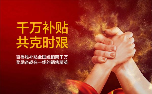 年初至今,全国上下众志成城抵御疫情,已取得阶段性成果。百得胜在第一时间响应国家号召,采取全员线上办公模式;同时,厂商联手共抗疫情,斥资千万补贴全国经销商,奖励给奋战在一线的销售精英。
