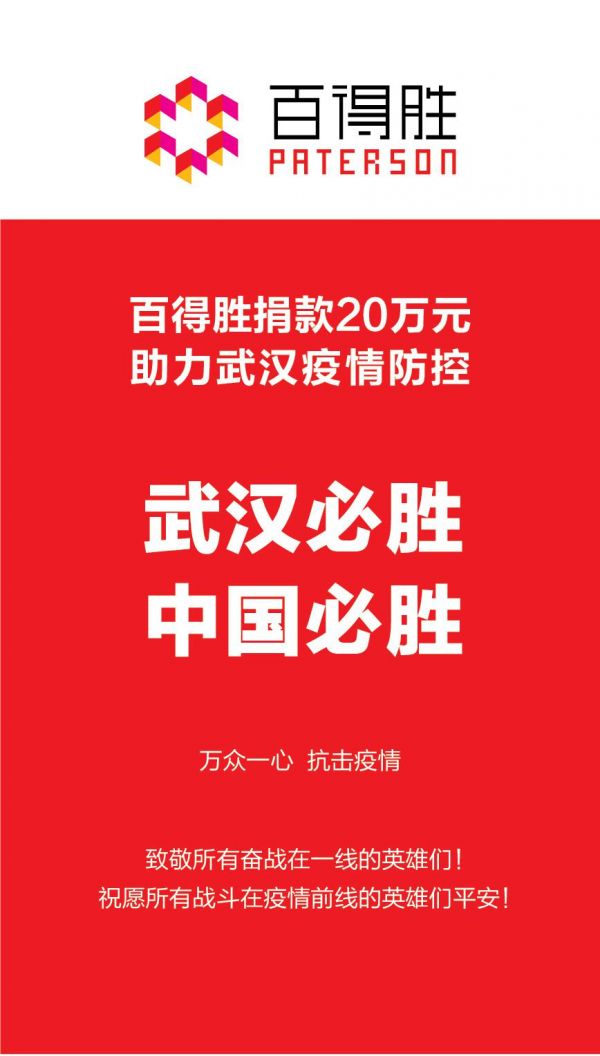 疫情伊始,百得胜总部高度重视疫情严重地区的情况,并迅速联系武汉慈善总会,捐赠20万元善款助力武汉疫情防控。