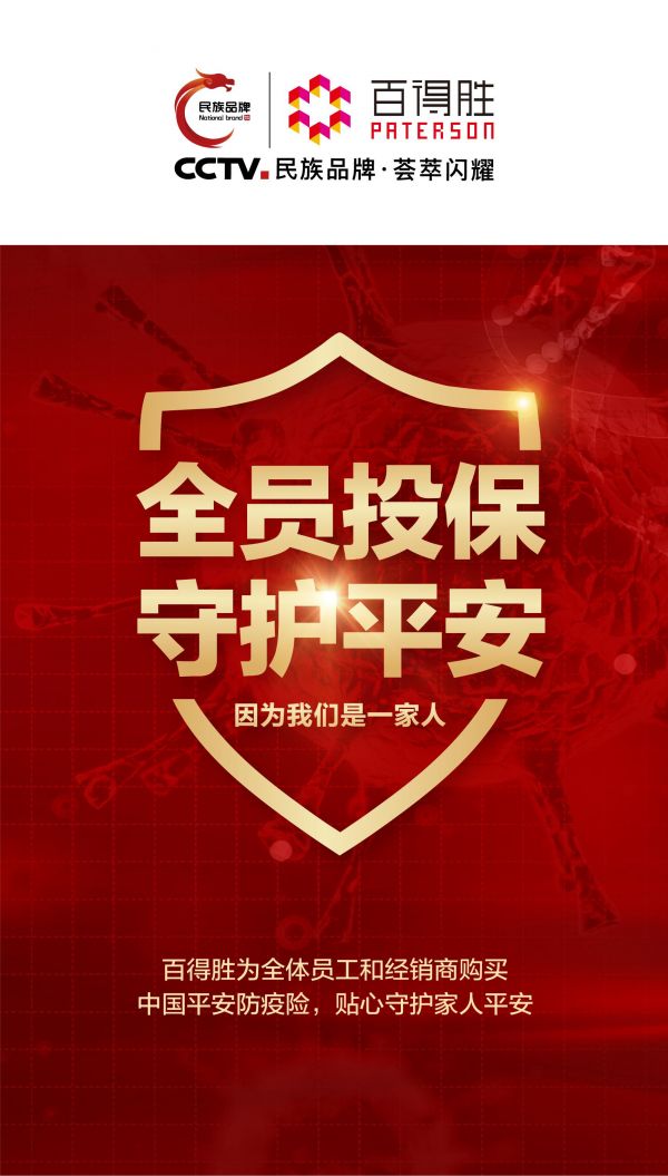 作为具有责任心和自豪感的民族品牌,疫情期间百得胜更是展示出对员工和经销商的关爱。2月中旬,百得胜统一为全国经销商和总部员工购买了中国平安防疫险,贴心守护家人平安。