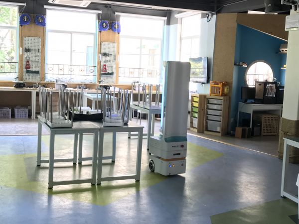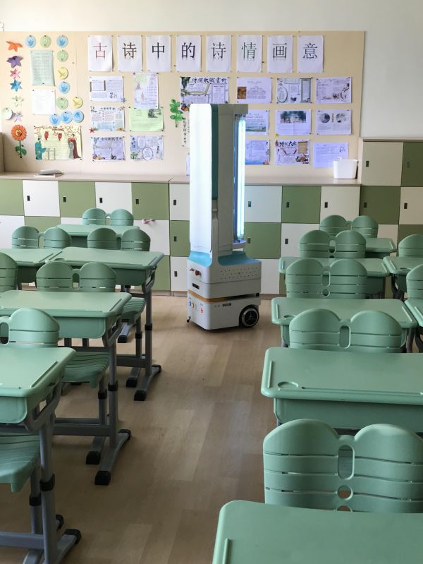 上海复瞻智能科技有限公司技术负责人乐刚在现场告诉记者,公司带来6台智能消毒机器人,这些机器人利用激光、超声波雷达相结合的算法进行无人导航,通过紫外线迅速杀灭空气中芽孢真菌等病原微生物,灭菌率可达99.9%。