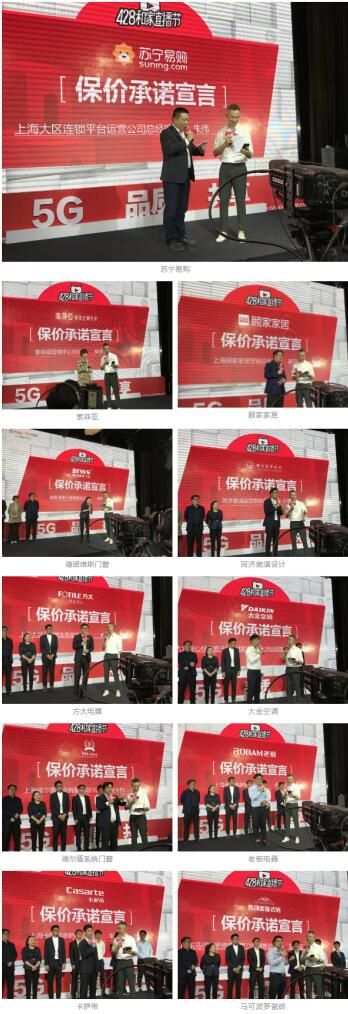 4月28日晚7点,由苏宁易购总冠名,和家网主办的“428和家直播节”装修采购狂欢夜直播在上海格乐利雅(中国)艺术中心举行,著名电视节目主持人、“上海好男人”程雷化身直播间主播,为100+优选泛家居行业品牌:装修、建材、家具、家电品牌带货,如:苏宁易购、索菲亚定制、顾家家居、德诺威斯门窗、同济装潢设计、方太电器、大金空调、维尔盾系统门窗、老板电器、卡萨帝、马可波罗瓷砖都来到了本次直播主会场,给上海老百姓带去立省30%-70%的超值优惠。