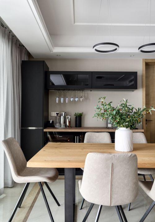 噪噪嚷嚷的尘世里,用质朴本真的餐桌赋予食材的原始情怀。它将所有的现代舒适巧妙地隐藏在内室,顺从着该有的颜色与质地,阳光穿过偌大的落地窗,踮起脚尖与鲜花共舞,生活的本真在与自然对话,一茶一饭,一杯红酒,餐桌容纳着家庭所有的爱,在每一次就餐的时刻变成快乐和饱足。