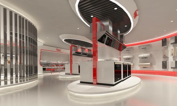 中岛展示柜主要用来展示荣获厨卫行业奖项的产品,以及拥有核心技术、专利证书的核心产品。两组中岛展示柜可同时展示12套烟灶消产品。