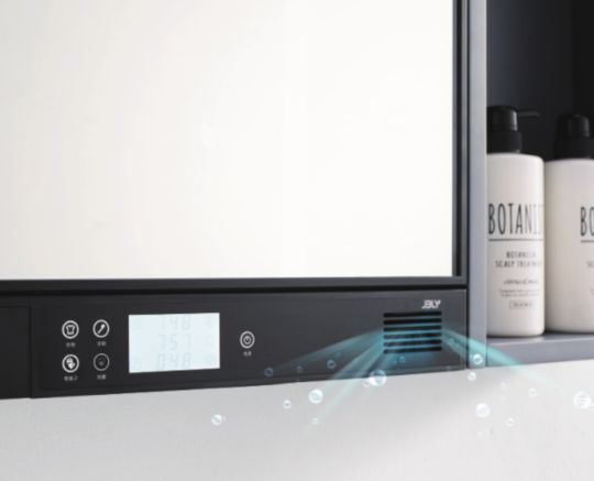 金柏丽雅多功能智能浴室柜具有一键除雾功能,在几秒钟内,就可以快速去除水雾。它的除雾原理是通过热气加热玻璃实现除雾,相比于传统通电加热玻璃实现除雾,其安全性能更高。