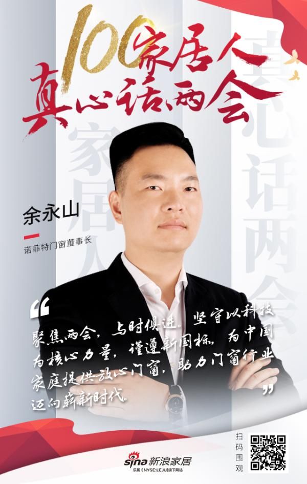 诺菲特门窗董事长 余永山:“聚焦两会,与时俱进。坚守以科技为核心力量,谨遵新国标,为中国家庭提供放心门窗,助力门窗行业迈向崭新时代。”