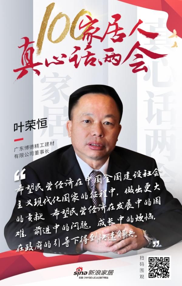 广东博德精工建材有限公司董事长叶荣恒:“希望民营经济在中国全国建设社会主义现代化国家的征程中,做出更大的贡献。希望民营经济在发展中的困难、前进中的问题、成长中的烦恼,在政府的引导下得到快速解决。”