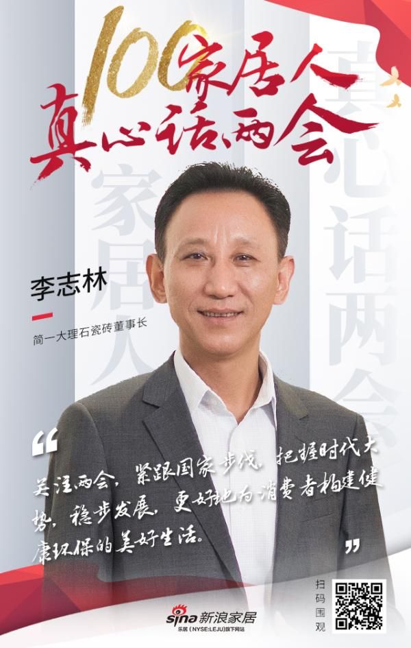 简一大理石瓷砖董事长李志林先生:“关注两会,紧跟国家步伐,把握时代大势,稳步发展,更好地为消费者构建健康环保的美好生活。”