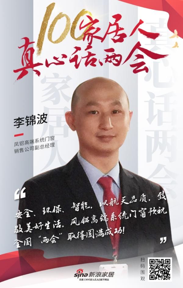 凤铝高端系统门窗销售公司副总经理李锦波先生:“安全、环保、智能,以航天品质,致敬美好生活。凤铝高端系统门窗预祝全国“两会”取得圆满成功!”