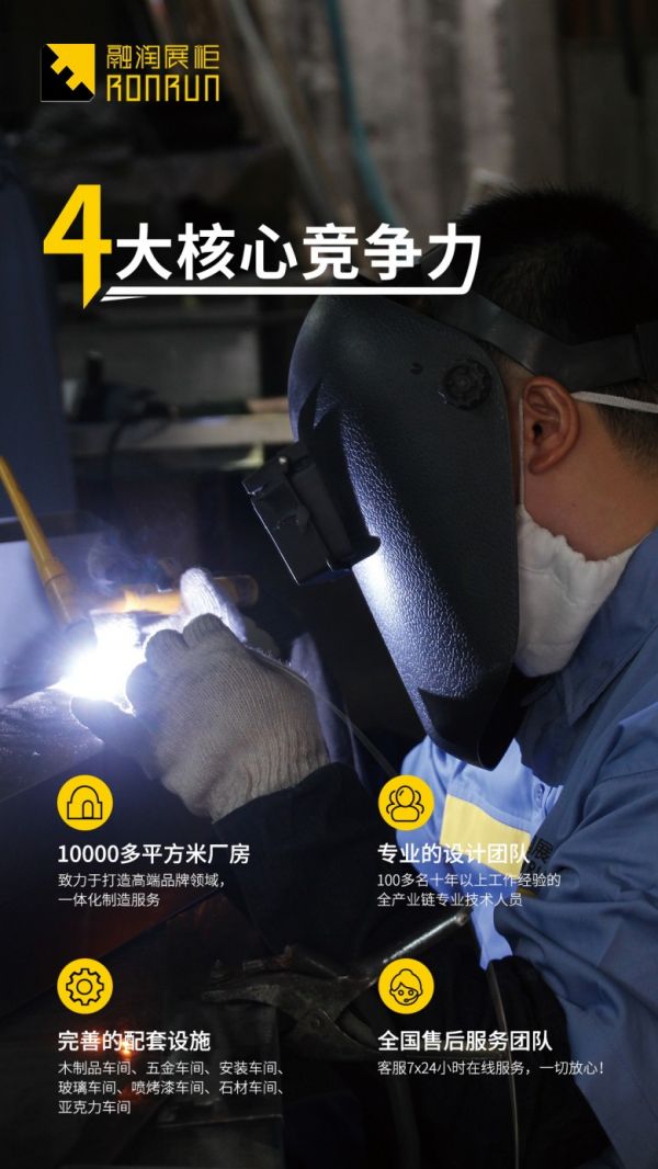 融润展柜引进德国先进的生产设备和技术作为科技创新的重点,产品质量稳定,性价比高,成立19年来产品远销全球超过67个国家和地区。作为中国制造的优秀代表,在科技创新和品质提升上为行业做出表率,始终以工匠之心为消费者缔造高品质的精品,每一个细微之处都要严格通过检验,保证送到客户手上的产品都将是令客户开心满意的。