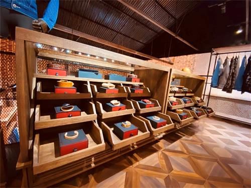 俯瞰而下,整体空间映入眼帘,红砖墙在这里洗尽铅华重获新生,装饰品、特色服饰、钢板实木组成一幅静谧的画面,刚好满足人们为自己挑选服饰时,不自觉向下窥探的猎奇心。