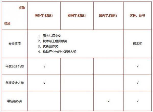 1. 设计作品获得提名奖及以上奖项的获奖者代表,均可获得学术旅行奖励;