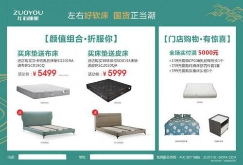 5月10日至31日期间,一场声势浩大的“上新了左右”新品大促在全国席卷,不仅有重磅新品、国潮爆款一同来袭,还有多款超实惠颜值组合,如“买床垫送布床”“买床垫送皮床”“买沙发+客厅配套送床架”“买沙发+客餐厅配套送软床”……有买有送,款款高颜值,样样有惊喜!即使天气如此炎热,也难挡人们对左右沙发的热情,火爆的热销活动,在全国各地的左右门店轮番上演。