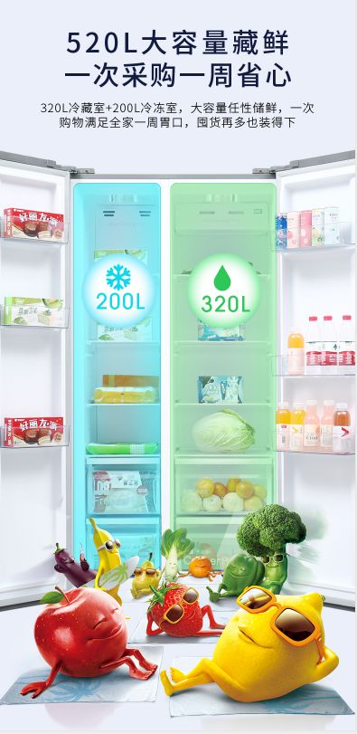 12期免息买冰箱?新品520L大容量小Biu对开门冰箱让新鲜生活触手可及