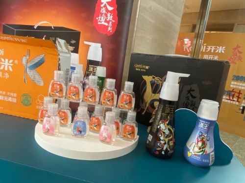 在世纪坛敦煌展览现场,很多观众都注意到展览入口处的“开米”展示区,对开米和敦煌艺术符号结合的产品产生了浓厚的兴趣。在本次展览中,开米挖掘“反弹琵琶”、“飞天神女”、“神鹿”的艺术灵感,结合开米涤王生物酶多功能浓缩洗衣液、涤王丝绸专用洗涤液、蔬果清洗剂、贝芬洗手液等王牌产品,推出了“大盛敦煌”版包装产品。
