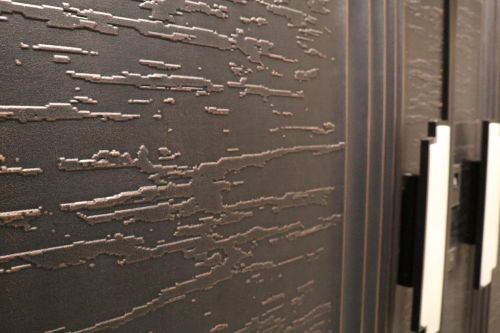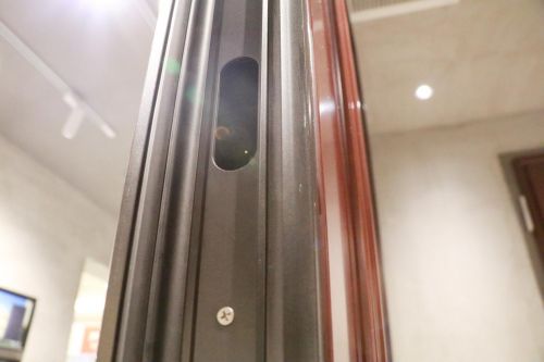 靖琪采用2.5mm的超硬质铝型材对铸铝板-装甲内胆-木饰面板进行固定,起到防撬功能,由于采用德式卡门工艺,正反面装饰面板可随意搭配,任意更换,满足更多客户私人订制的需求,也可在不可抗因素导致饰面板损坏需更换时节省成本,只需更换一块板材即可,无需换门。