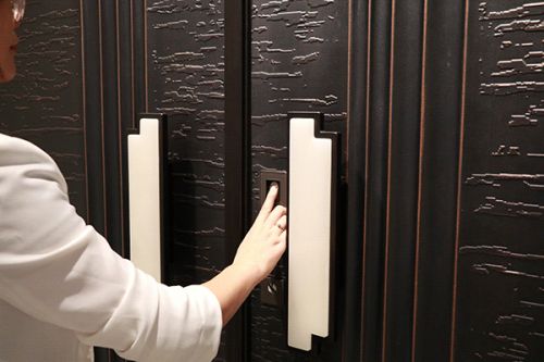 作为可定制化的梵蒂斯,靖琪可根据用户习惯选择锁体,当然也可使用当下流行的智能锁作为开门设备,小编测试了样品门中的智能锁设备,通过密码或指纹的方式,可轻松打开,在内门中,意见锁定功能,也极为方便。