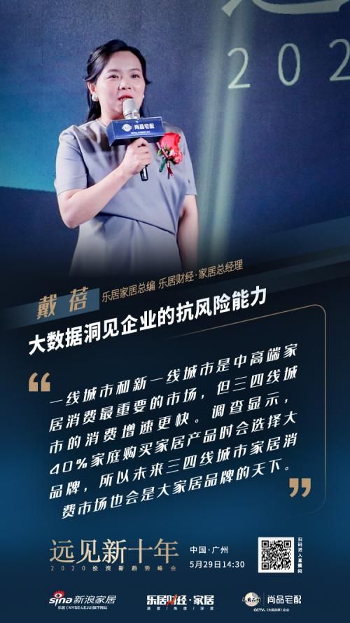 5月29日,由新浪家居、乐居财经·家居、尚品宅配联合主办的“远见新十年——2020投资新趋势峰会”在广州圆满举行。中国城镇化的快速发展,房地产市场的不断下沉,国民消费水平的再度提升,让近年来的家居产业更受资本市场的青睐。