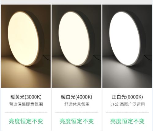 说到这里要敲一下黑板!普通的吸顶灯出于降成本的需要,大多数采用的设计是,暖白光是全功率,而暖黄光和正白光是半功率。降低功率则会导致灯光亮度降低,所以我们在使用中可能会明显感觉暖黄光和正白光不够亮,视线变得恍恍惚惚。宜美朗润吸顶灯注意到这个问题,在产品设计时就做好了全功率设计,在不同色温状态下功率保持不变,使灯具亮度恒定不变,达到更好的工作、休息状态。