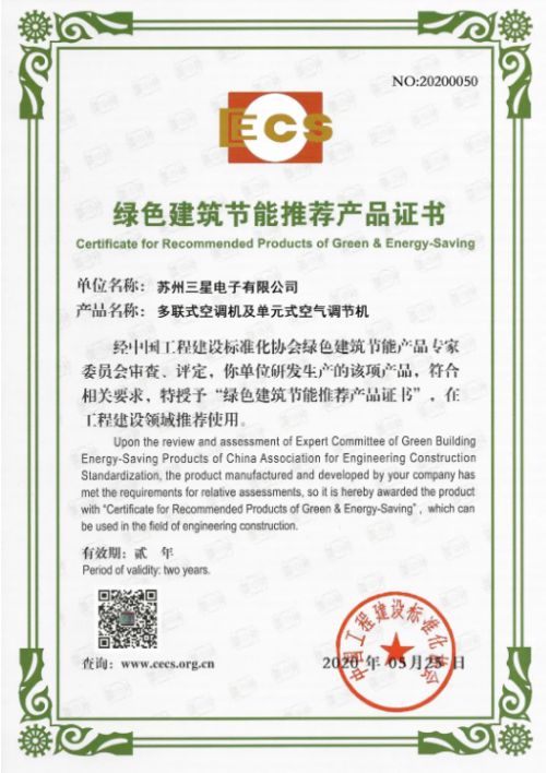 此次颁发的两项证书是对三星中央空调在产品节能、绿色、环保生产上所做贡献的充分肯定。未来三星中央空调将继续利用先进的技术优势,打造出更加节能、智能、安全的空调产品,为客户提供家居和商用暖通整体系统解决方案,实现创造高品质生活的企业使命。