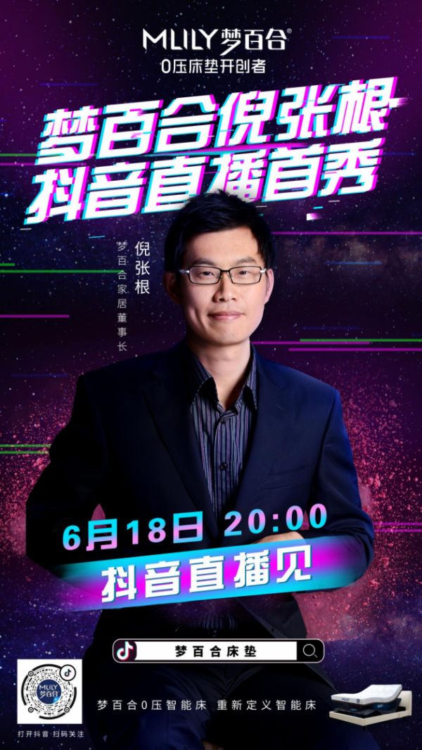 2020年开局,突如其来的疫情,改变了人们的生活习惯,也在重构着人们的消费方式。此消彼长下,直播电商的星火越发燎原。本次倪张根董事长在抖音的直播首秀更是展现出了梦百合全网布局的宏大视野。作为0压睡眠开创者,梦百合也定不会辜负粉丝的期待。618梦百合家居董事长直播首秀还将带来哪些惊喜,让我们拭目以待。
