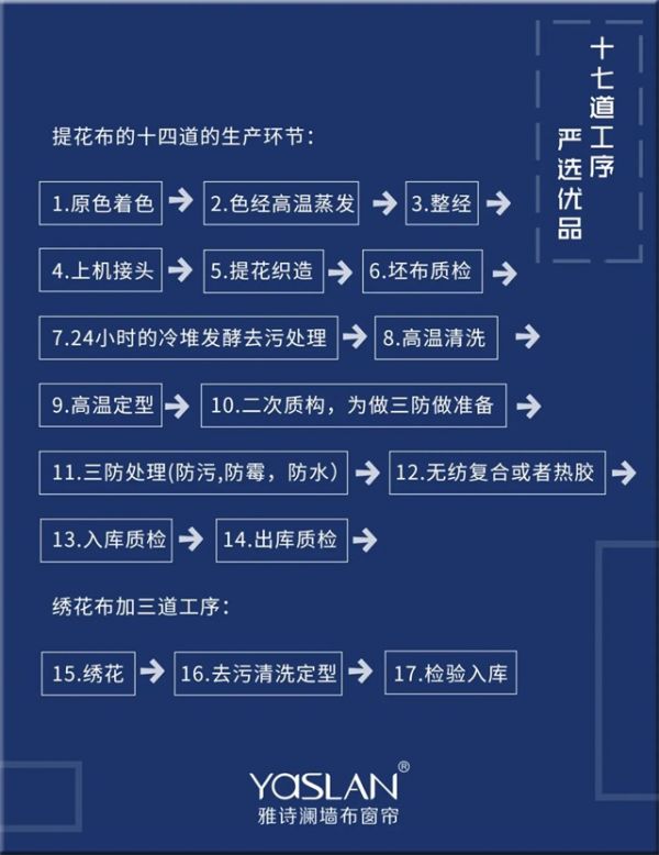 CTC儿童安全级产品的背后,是雅诗澜墙布一直在为践行健康的家居生活而努力!雅诗澜一直致力于研发高品质、健康环保的产品,严把环保质量关,精选原材料。从纱线到成品层层把关,每一道工序都经过严格的品质检测,确保绿色环保安全。十七道工序严选优品,源头保障质感家居。