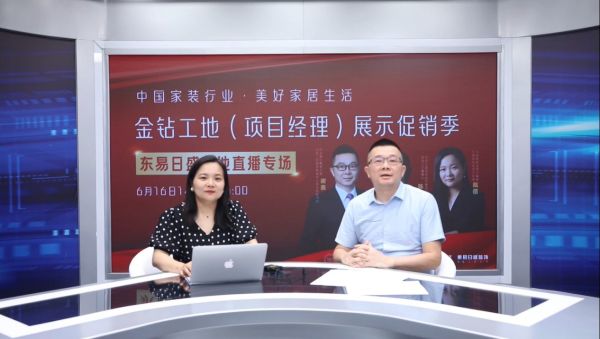 6月16日,由全国工商联家具装饰业商会、乐居财经主办,西海SDS商学院承办的“中国家装金钻工地(项目经理)展示促销季暨新时代中国美好家居生活公益特惠活动”迎来了东易日盛专场。活动于14点准时开场,二十余万网友齐聚直播间与全国工商联家具装饰业商会家装专委会会长、西海基石教育执行董事、东易日盛集团董事长陈辉先生积极互动、讨论有关家装施工交付等热点问题。同时全国工商联家具装饰业商会副秘书长、西海基石教育总裁谢鑫,乐居家居全国总编辑、乐居财经·家居总经理戴蓓也一同出现在直播间与广大网友进行互动。