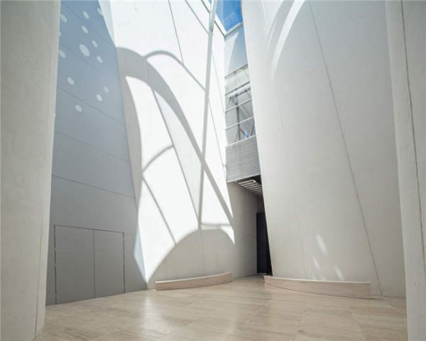 整个视觉给人的感觉,如同建筑物像泉水一样从地球上萌芽并成长。建筑师使用弯曲而不是平坦的混凝土板来解决画廊之间的流动性,从而解决刚性秩序问题。