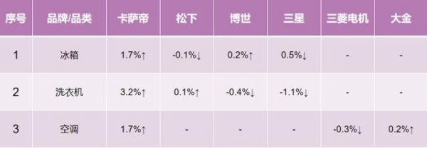 首先,从高端市场来看,截止24周年累数据显示,高端冰箱产业中份额上涨的有卡萨帝、博世,下跌的有松下、三星;洗衣机产业卡萨帝、松下上涨,博世、三星下跌;空调产业中卡萨帝、大金上涨,三菱电机下滑。以上产业中,卡萨帝涨幅第一。从中可见,价格不再是消费者最看重的要素,更多用户愿意选择卡萨帝,享受高端生活品质。