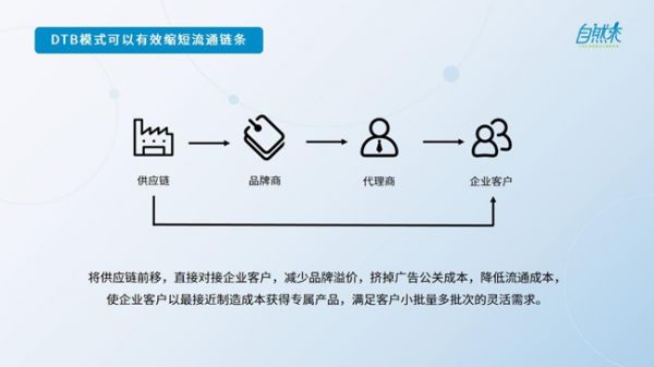 “DTB”模式将供应链前移,减少中间环节直接对接企业客户,减少品牌溢价,挤掉广告公关成本,降低流通成本,使企业客户以最接近制造成本获得专属产品,满足客户小批量多批次的灵活需求。