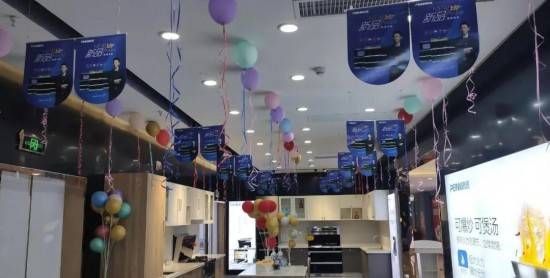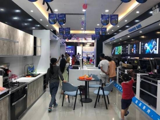 店内集成灶、蒸烤箱、集成水槽、燃气热水器、整体橱柜等产品配置齐全,陈列井然,氛围热烈,为当地消费者提供了一个高品位、完美、专业的实景厨房情境体验馆。