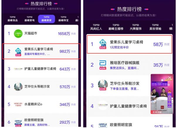 为了更好地运用好“流量”,爱果乐自建500平直播间,利用专业数字化直播设备,通过个性化的视觉设计,复刻学习场景,打造全新的场景化、交互式直播,让用户在享受主播带来的沉浸式直播内容盛宴的同时,能更直观地了解学习桌椅的功能性和适配性,让每一位消费者对爱果乐有更深入的了解与信任。在19年的618、双十一直播大战中一举成名,一秒几千万上下,获得由阿里颁发的“年度成长力商家”、“超级带货王”等称号。