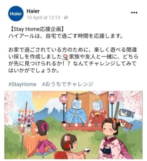 除了保障服务工作的正常运行,疫情期间海尔日本还积极创新用户交互方式,从生活场景出发,为用户提供美好生活解决方案。3月,海尔日本开启新生活TikTok挑战赛;4月,海尔日本在Facebook, Twitter等SNS线上平台发起《大家来找茬》系列活动;通过与用户进行线上场景交互,共同体验海尔打造的健康生活场景。