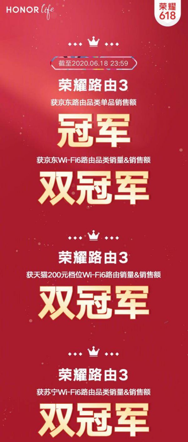 荣耀在今年的618盛典中再次赢得了众人目光。荣耀各品类产品均取得不凡的成绩,表现最为抢眼的便是荣耀路由系列产品,其中最受消费者喜爱的就是荣耀路由3。荣耀路由3作为荣耀路由器中首款支持wifi6技术的产品,定会成为新网络时代下的网速提速神器。