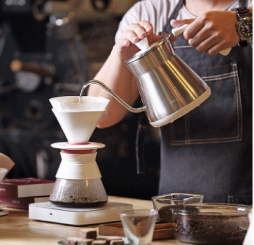 手柄人体工学设计,握持手感更舒适,握把横竖握皆宜,帮用户轻松解锁最舒服的握持姿势。容量为500ml,足以让两个人一起享受一个静谧的午后,让生活慢下来,让心静下来。为了让出水更得心应手,百胜图对手冲壶的壶嘴也进行了精心设计,7mm天鹅颈壶嘴,精准控制水流,既能驾驭粗犷的大水流,也能适应涓细的小水流。