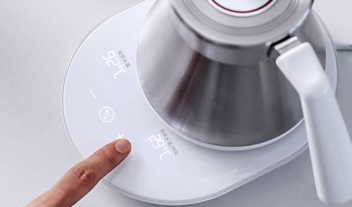 温度对冲煮的影响不言而喻。为了不影响咖啡的萃取效果,这款手冲壶采用了英国的STRIX控温系统,精准烧水到设定的温度,温差控制在正负1度内,控温效果出奇地令人满意。市面上少有的双温显示面板设计,不仅让用户时刻了解温度变化,也记录下用户设定的咖啡冲煮温度,让整个过程变得更简单流畅。1500W高功率加持下,只要将温度设定<98°C,系统就会开启开水模式,短短几分钟即可将500ml的水烧开,满足父亲的日常需求。