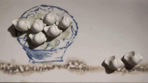 说到饺子系列的最初萌芽,也跟童年的除夕的经历有关。“小时候家里有店铺,除夕大半天时间还在看铺子。要到傍晚以后,客人都走得差不多了,一家人才开始匆匆忙忙聚在一起准备年夜饭。时间太赶了,家里小孩也参与一起包饺子”,所以“饺子”是从无意识的时候开始,深植在王树辉的生命印记中的。后来的“饺子”系列诞生,与其说是标新立异的灵光乍现,不如说是对“环境无意识熏陶”后,自然而然诞生于手边的感知延续。