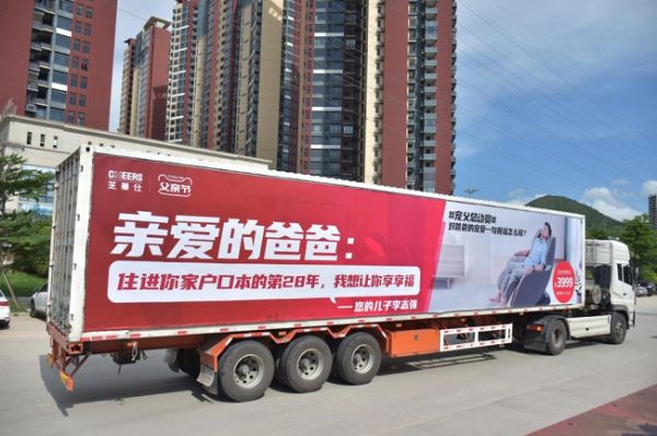 父亲节作为重要的节日IP,对于品牌来说如何玩出花样,“俘获”人心是值得品牌思考的问题。而在本次6月21日父亲节到来之际,芝华仕根据父亲容易被忽视的点,通过“宠父总动员”的活动,以巨大车厢+巨型“宠父”宣言的礼车形式,号召广大子女大胆对父亲“表白”,将心中的那份敬重与关心勇敢说出来。这种温情的营销,引起人们的广泛关注,让人们为这种“移动的文化传播”点赞的同时,也展现了芝华仕自身品牌的“温度”。