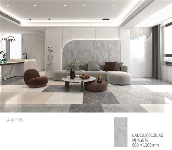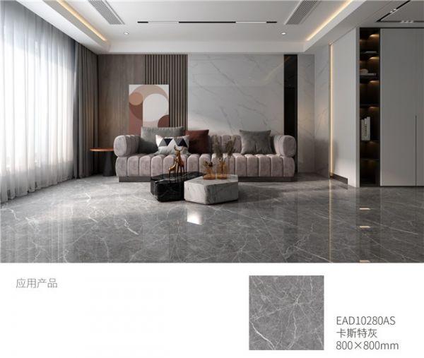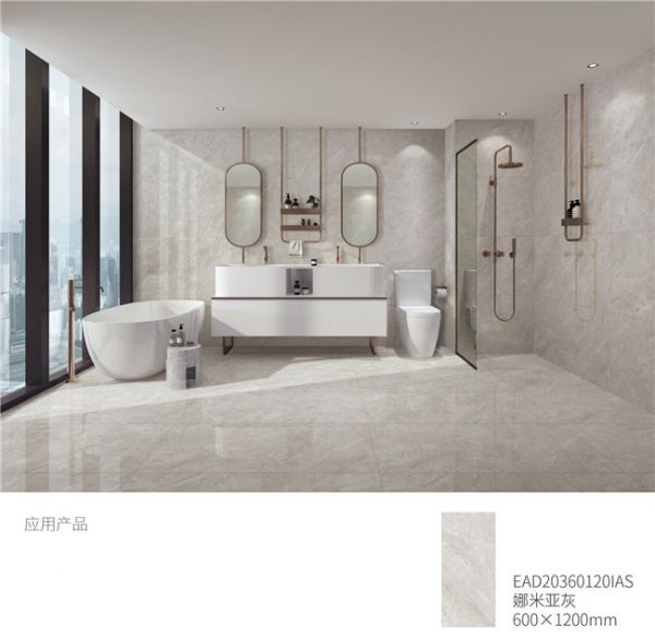 这款娜米亚灰为我们展现了灰的另一种境界。它在设计上淡化了灰的冰冷色调,加入了温暖的米色进行调和。其柔软的花纹与上面说的雅士卡白有异曲同工之妙,大面积或者墙地一体铺贴都可以轻松驾驭。