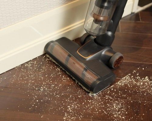 针对这一点,魔洁M12Max从人体工程学出发,采用立式与手持组合设计,将主机本体下置,使整机重心更低,清洁时主要重量压在地面上,手臂不再受力,在清洁过程中会释放手臂压力。更为重要的是,魔洁M12Max在滚刷后方的左右两侧还分别设计了两个橡胶脚轮,在工作时更好地起到助力的作用,即使手臂力量较小的女性两根手指就可以做到推着机器走,心中幸福满满,手中坚定而有力,推着清洁更轻松!