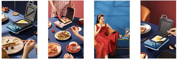浩诗三明治机备受热捧的原因不仅仅得益于它便捷、简单的操作方式,更与它“小轻新”的设计密不可分。浩诗三明治机整个外观呈现小巧时尚的复古唱片机样式,配色选用充满夏日清新感的海岛蓝、浅岸绿、珊瑚粉三款配色,从颜值上就深深抓住了用户的心。同时,飞碟三明治盘、华夫饼盘、平煎烤盘三种功能烤盘的随心搭配,让用户无论是制作快手早餐、精致下午茶还是宝宝的点心都能轻松完成。此外,其3分钟速热的便捷功能、安全保护、防烫防滑的贴心设计等也凸显出品牌在产品上的人性化思考和细节把控。