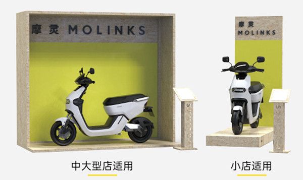 而那些希望开线下门店的合作者,摩灵电动在提供上述服务的同时,也会提供MO BOX摩盒视觉系统,量身定做个性化门店陈列模具,从而最低限度降低门店装修的成本。