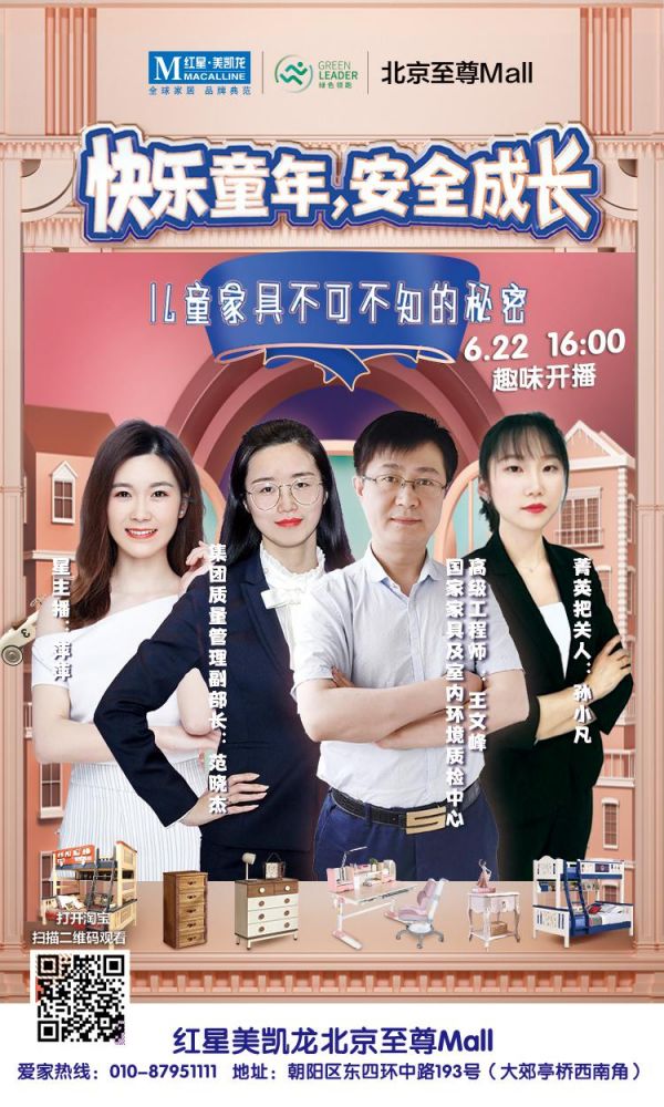 家长在选购儿童家具时,首先要关注安全、舒适和健康,其次才是选择样式新颖美观、功能灵活多样。 红星美凯龙北京至尊Mall还邀请到了国家家具及室内环境质检中心高级工程师王文峰、集团质量管理副部长范晓杰从专业角度解读儿童家具安全,并为优质品牌进行了背书。满满的干货分享,再加上前所未有的优惠加持,让为期一个半小时的直播收获了万余名观众的参与。