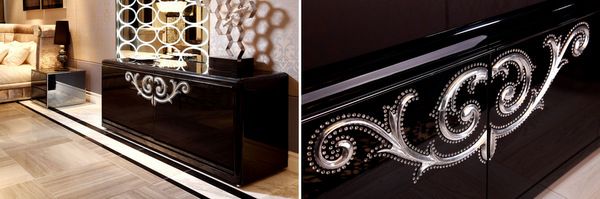 水晶因其晶莹璀璨、温婉剔透、高贵典雅、纯净无暇的特性,一直广受人们的喜爱。Frandiss镶嵌的水晶是来自奥地利阿尔卑斯山麓的施华洛世奇水晶,施华洛世奇以其高度纯净、精准切割、独特设计成为了世界优质水晶的代名词。它是时尚界的宠儿,在香奈儿,古驰,迪奥的等顶级时尚品牌以及好莱坞明星身上左右逢源。在Frandiss后现代系列家具上,广泛地应用了镶水晶的工艺,考究的用材让家具散发出神秘迷人的光彩,将产品的高端品味展露无疑。