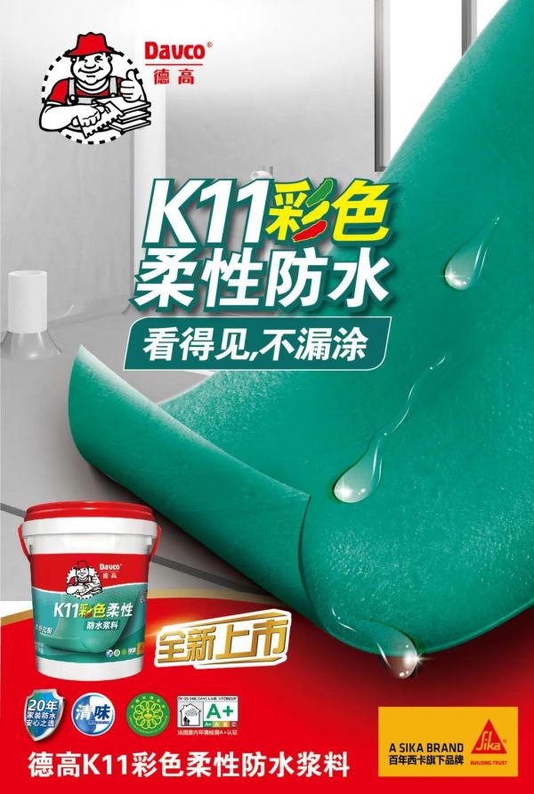 德高K11彩色柔性防水浆料 6月“性价比之选”全新上市,新品与盛夏一起来袭,一“件”刷新颜值防水新时代。全新升级的彩色配方,刷出具有夏日气息的湖绿色涂层。“美学”家装,从彩色防水开始。