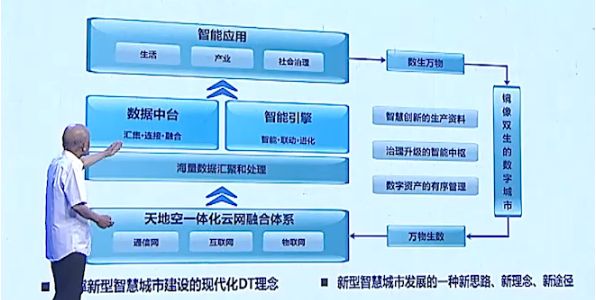 数字城市(数据汇集和贯穿的集成融合)+智慧场景(生产、生活、生态等场景智能化)+城市超脑(知识贯穿和系统发展的成长能力)