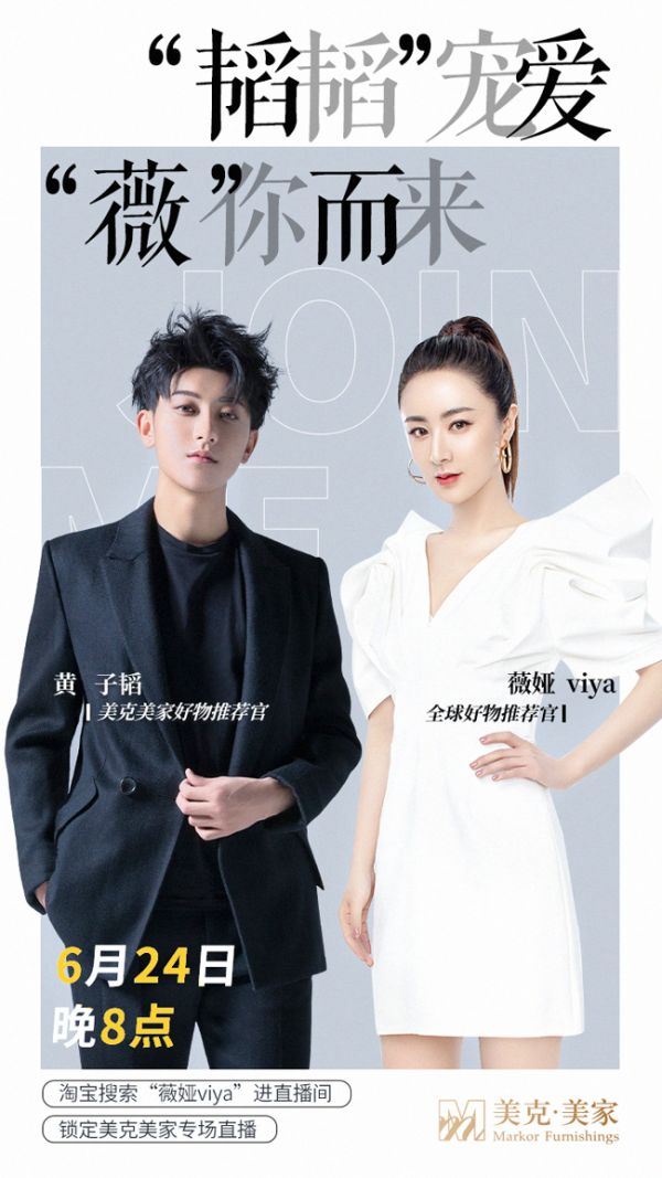 黄子1韬变身美克美家好物推荐官与近日牵手美克美家全球好物推荐官薇娅